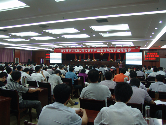 2012年8月3日,海安縣建材機械、現(xiàn)代建筑產(chǎn)業(yè)發(fā)展規(guī)劃解讀報告會在縣政府四樓會議室隆重舉行。中國建材工業(yè)規(guī)劃研究院高智、郝梅平兩位資深教授就當前建材機械、現(xiàn)代化建筑產(chǎn)業(yè)當前現(xiàn)狀和未來發(fā)展方向進行分析,準確定位我縣建材行業(yè)發(fā)展走向,現(xiàn)場解讀建材裝備和現(xiàn)代建筑規(guī)劃報告。中國建筑材料工業(yè)規(guī)劃研究院院長劉長發(fā),海安縣政府副縣長盧忠平,政協(xié)副主席蔡祝平出席會議并發(fā)表講話,我縣重點企業(yè)